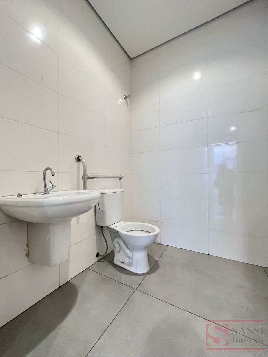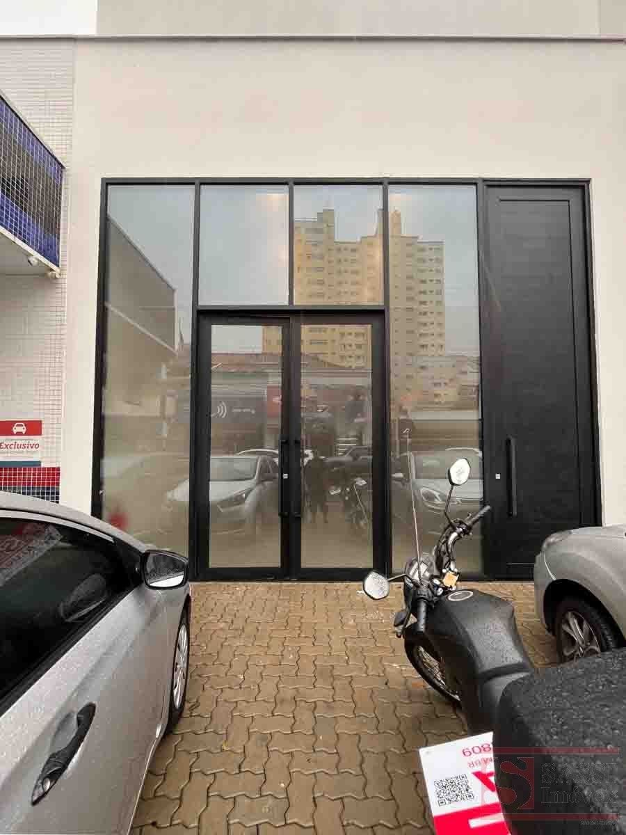 Salão comercial com mezanino e 2 vagas de recuoSalão comercial com aproximadamente 97 m², ideal para diversos tipos de comércio ou prestação de serviços. O imóvel possui ambientes bem distribuídos, proporcionando praticidade e funcionalidade para o seu negócio.Conta com copa equipada com gabinete planejado e pia de mármore, além de 02 banheiros sociais adaptados, sendo 01 com armário planejado.O imóvel dispõe ainda de mezanino no piso superior com aproximadamente 28 m², contendo 01 banheiro social, oferecendo espaço adicional que pode ser utilizado como escritório, estoque ou área administrativa.Na parte frontal, possui 02 vagas de recuo, facilitando o acesso de clientes.Acabamento com piso em porcelanato e teto em gesso, proporcionando um ambiente moderno e bem estruturado para atividades comerciais.