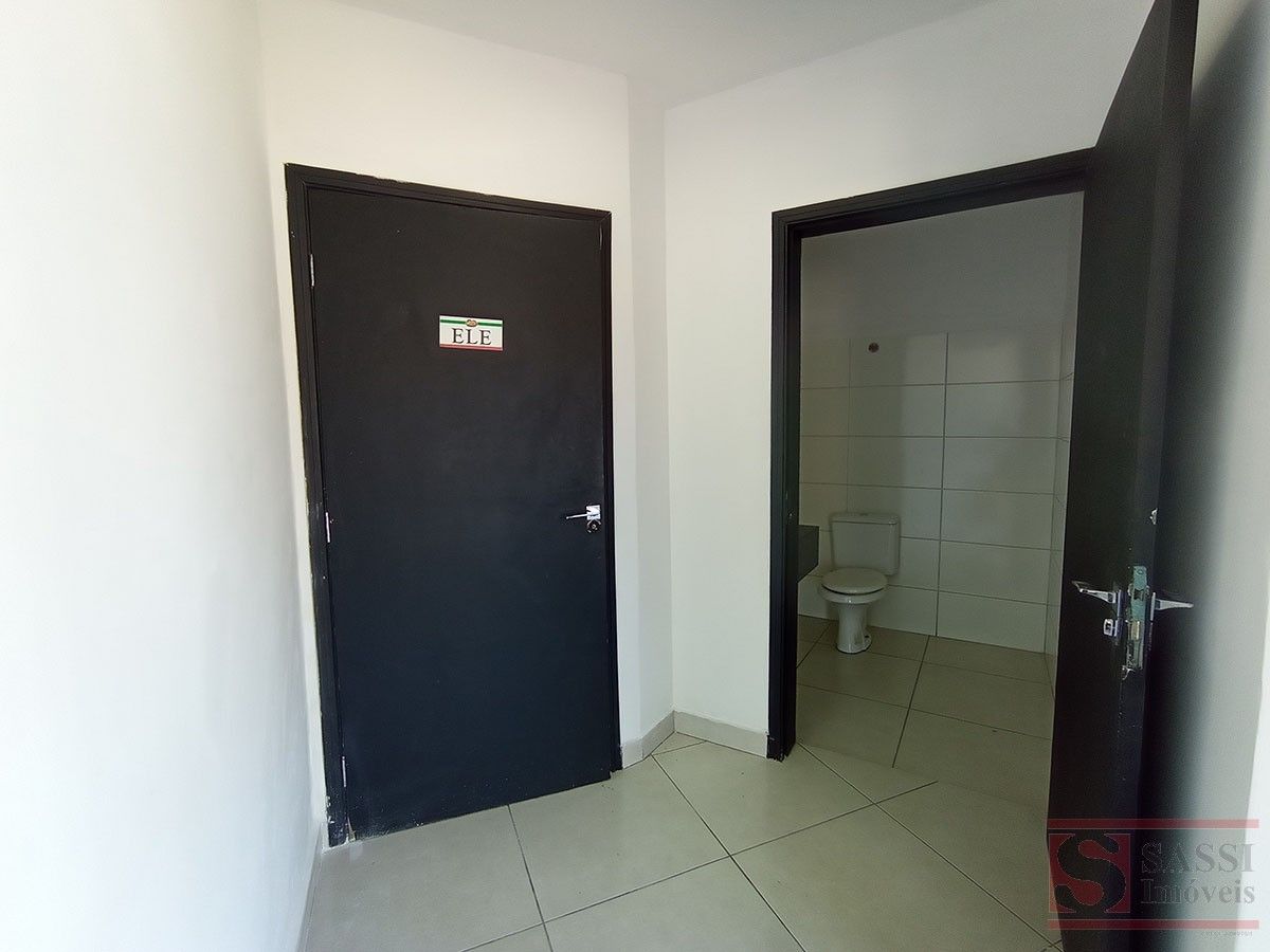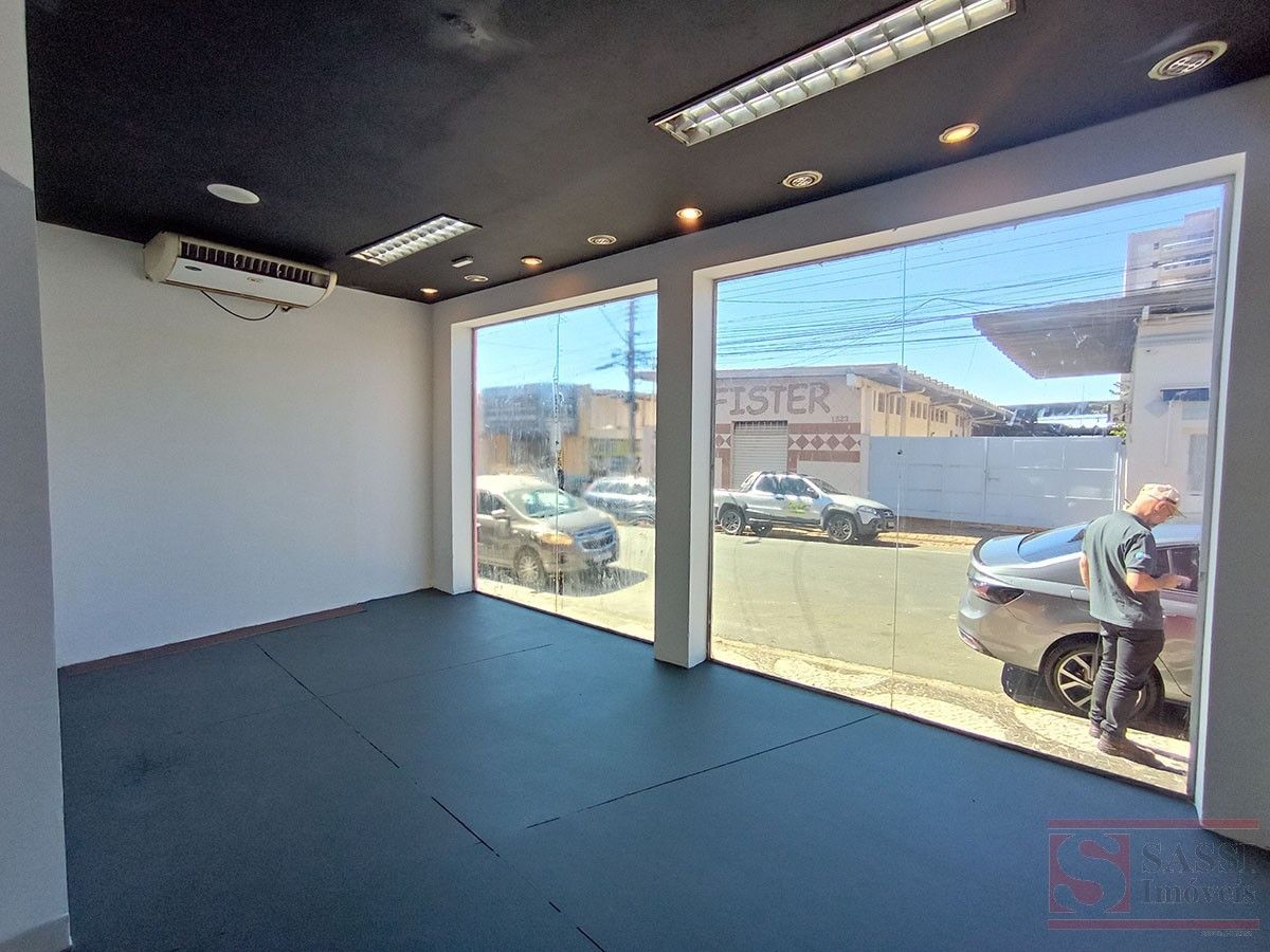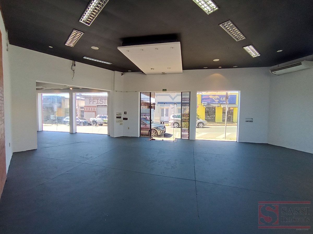 Amplo salão com aproximadamente 100 m², ideal para comércios e serviços. Conta com 2 banheiros, piso cerâmico e contrapiso, além de teto em laje com acabamento em gesso.