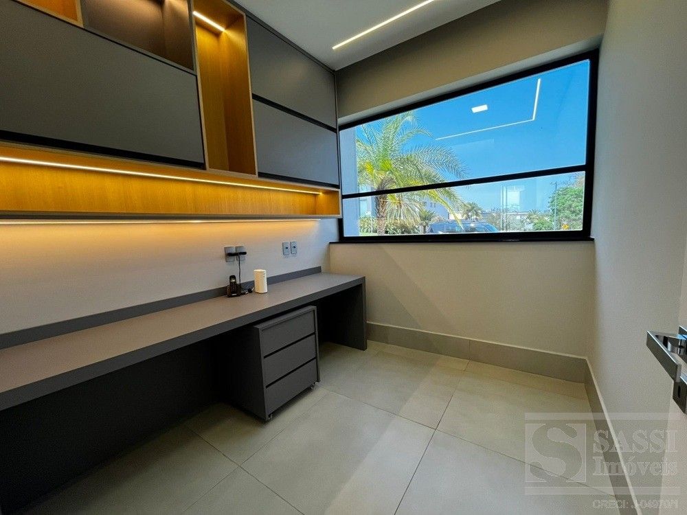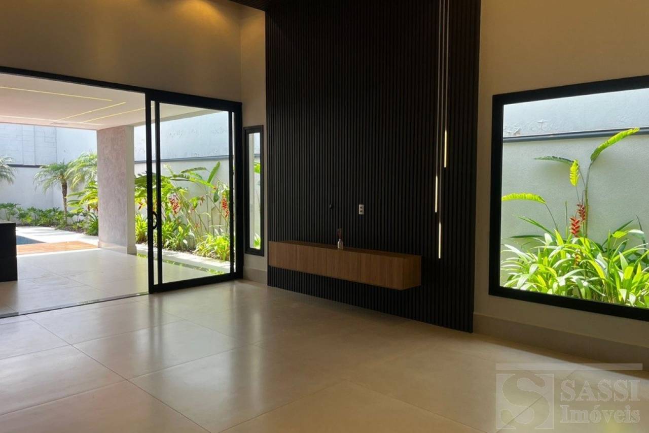 Linda casa térrea, com conforto e Sofisticação em Cada Detalhe com: 03 suítes, sendo 01 máster com closet, duchas e cubas duplas, todos com planejados, iluminação elegante em LED e climatizados. Conta ainda com escritório planejado com banheiro, ideal para quem trabalha em home office. A sala para dois ambientes possui painel ripado com iluminação em LED e caixas de som JBL, integrando-se perfeitamente à cozinha americana planejada, equipada com geladeira, fogão cooktop, forno e micro-ondas Brastemp, lava-louças Brastemp e depurador Franke. A lavanderia também é planejada e já conta com máquina de lavar e secar LG. Na área externa, destaque para a área gourmet completa, equipada com geladeira Brastemp, cooktop e caixa de som JBL, além de banheiro externo. A piscina com hidro e prainha é cercada por um deck de madeira garapeira (10,3 cm), proporcionando um espaço perfeito para lazer e relaxamento. Garagem para 03 veículos, sendo 02 vagas cobertas.